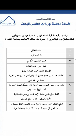 محمد عثمان الخشت، بمشاركة كل من سعادة سفير خادم الحرمين الشريفين لدى