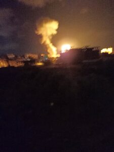 وأضاف أن دوي انفجارات هائلة سمعت مع مشاهدة كتل من اللهب والنيران في المواقع المستهدفة.