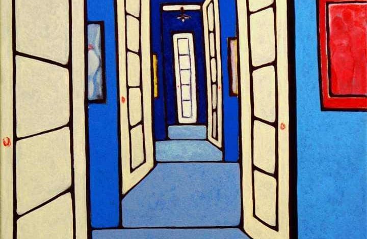* في هذه اللوحة المشهد عبارة عن ممر مكون من ٥ غرف بها ٥ أبواب ، ٤ أبواب مفتوحة واخر باب مغلق ، هذا الباب قد ينفتح لمفاجأة رائعة.