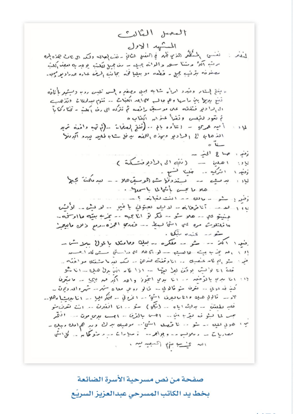 يأخذنا الكتاب إلى بدايات عبدالعزيز السريّع، حيث نشأ في بيئة صعبة لكنها محفّزة على التعلم. ومنذ نعومة أظفاره، أبدى شغفًا بالقراءة، وكان أول كتبه “عابر سبيل” لعباس العقاد. ومن هنا انطلقت رحلته مع الأدب والفكر العربي والعالمي، ما منحه ثقافة موسوعية مكنته لاحقًا من المزج بين الأصالة والتجديد في كتاباته المسرحية.