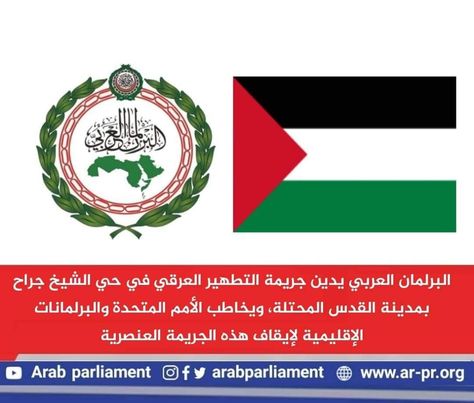 أدان البرلمان العربي جريمة التطهير العرقي التي تقوم بها قوات الاحتلال الإسرائيلي من خلال التهجير القسري وإخلاء 28 منزلاً يقطنها 500 مواطن فلسطيني في حي الشيخ جراح في مدينة القدس المحتلة تمهيداً لإقامة وحدات استيطانية إسرائيلية جديدة مكانها.