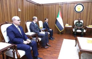 اجتمع رئيس مجلس السيادة الانتقالي، الفريق أول ركن عبدالفتاح البرهان، مع المبعوث الأمريكي الخاص للسودان، توم بيرييلو، في مدينة بورتسودان. حضر اللقاء السفير عمر عيسى، وكيل وزارة الخارجية بالإنابة، وسفير السودان لدى الولايات المتحدة، محمد عبدالله.