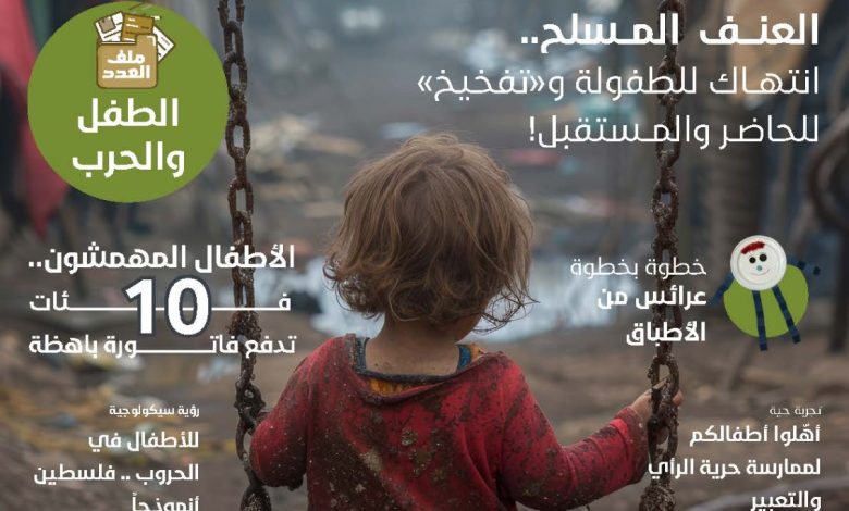 تضمن ملف العدد “الطفل والحرب” عددا من الموضوعات هي: “العنف المسلح انتهاك للطفولة وتفخيخ للحاضر والمستقبل” للسفيرة الدكتورة داليا سليمان ، و”كيف نحمي الأطفال في زمن الصراعات؟” للكاتبة المغربية الدكتورة هدى كركيش، و”رؤية سيكولوجية للأطفال في الحروب: فلسطين أنموذجا” للدكتور التربوي محمد محمود العطار ، و “كل ما يراه الطفل قد ينسى إلا ويلات الحروب” للدكتورة رحاب شوقي أستاذ مساعد بكلية التربية جامعة الإسكندرية.