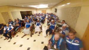 من جانبه، عقد الأستاذ أيمن عبد الموجود مساعد وزيرة التضامن الاجتماعي ورئيس البعثة المرحلة اجتماعا مع المشرفين قبيل ساعات من بدء التصعيد، شدد فيه على ضرورة التنبيه على الحجاج بالالتزام بالوقت المحدد لكل مجموعة للإحرام، والالتزام بالوقت المحدد للنزول إلى استقبال الفندق استعداد لركوب الأتوبيسات، لمنع التكدس في بهو الفندق، مع ضرورة التحرك في مجموعات بشكل منظم.