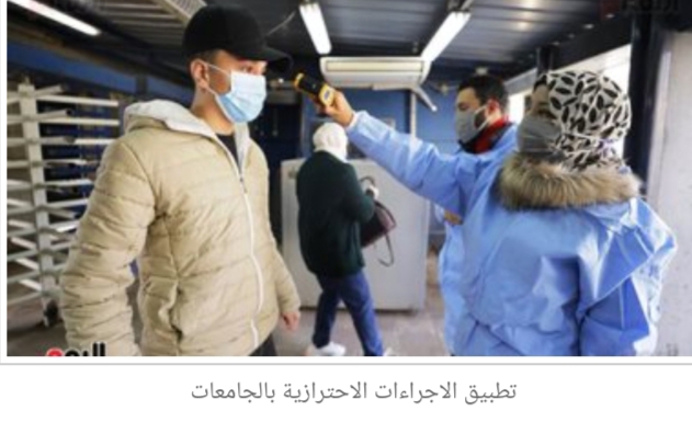 ● قياس الحرارة لجميع أعضاء هيئة التدريس والطلاب والعاملين قبل الدخول إلى الحرم الجامعي.
