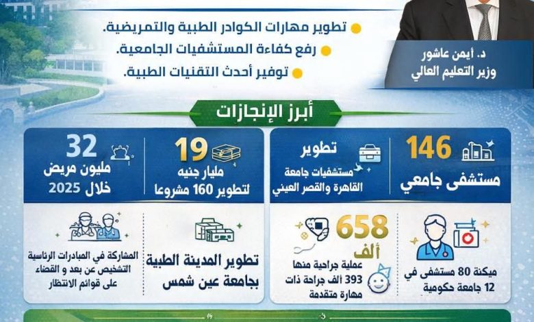 التعليم العالي تعلن حصاد أداء المستشفيات الجامعية خلال عام 2025