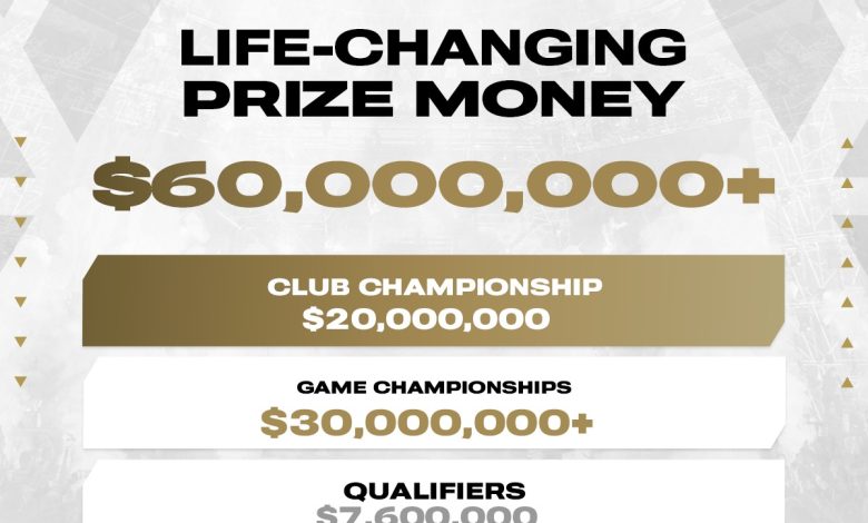 أعلنت مؤسسة كأس العالم للرياضات الإلكترونية “EWCF” Esports World Cup Foundation، عن قيمة مجموع الجوائز المالية المقدمة خلال النسخة الأولى من “كأس العالم للرياضات الإلكترونية” والمُقامة بمدينة الرياض. حيث سيتم تقديم 60 مليون دولار، وهو ما يُعد الجائزة الأكبر في تاريخ قطاع الألعاب والرياضات الإلكترونية والتي كانت في السابق لموسم الجيمرز: أرض الأبطال بمجموع جوائز بلغ 45 مليون دولار.