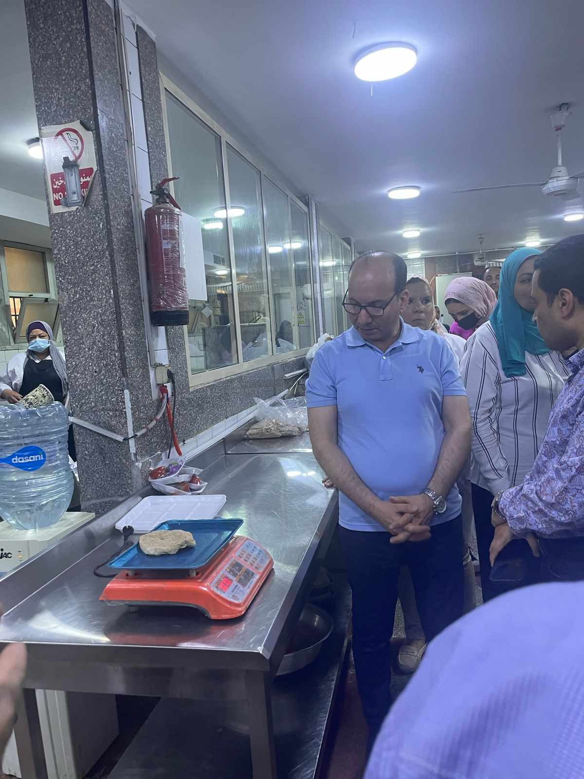 مختتماً جولته ؛ إنتقل إلى تفقد الوضع بمطبخ المستشفى ؛ حيث راجع الشهادات الصحية للعاملين بالمطبخ ؛ ومعايير تقديم الوجبات للمرضى والأطقم الطبية على حد سواء ؛ حيث وجه سيادته – مدير المستشفى بضرورة مراجعة تلك المعايير بصفة مستمرة للتأكد من وصول الوجبات في إطارها السليم ؛ ومحاسبة أى فرد يتلاعب بهذه المعايير .