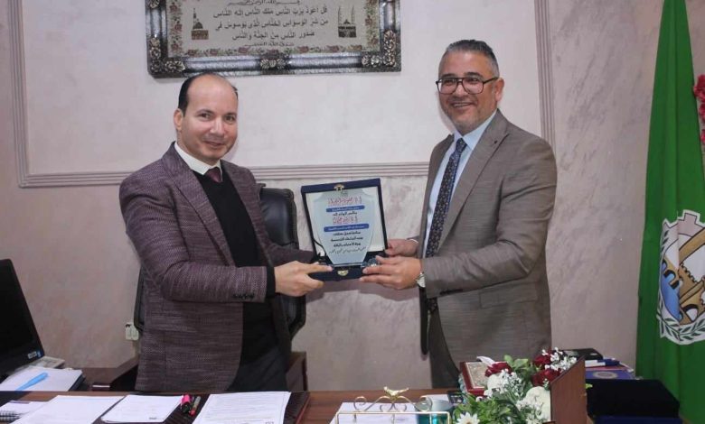 الجزار يهدى درع التكريم لمدير فرع التأمين الصحي بالقليوبيه