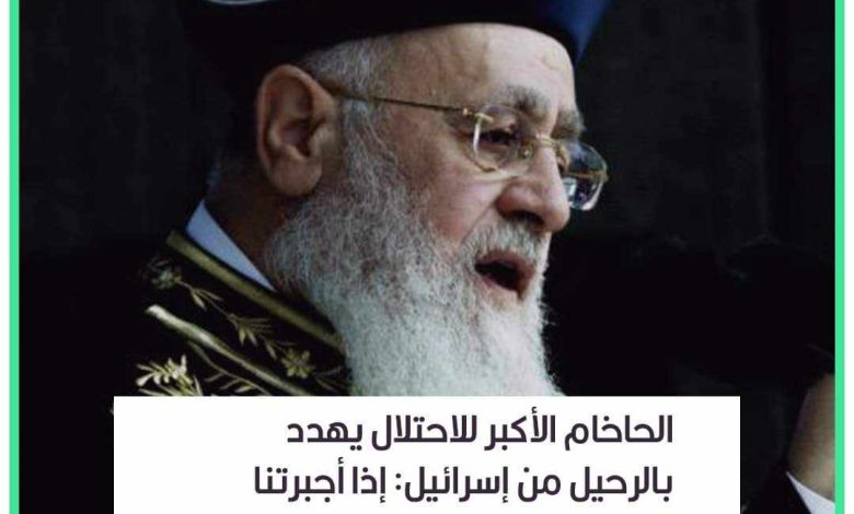 أصدر الحاخام الأكبر في دولة الاحتلال، يتسحاق يوسف، تصريحاً “نادراً” مساء السبت 9 مارس/آذار 2024، قال فيه: “إذا أجبرتنا الحكومة على التجنيد فسنسافر جميعاً إلى خارج إسرائيل”.