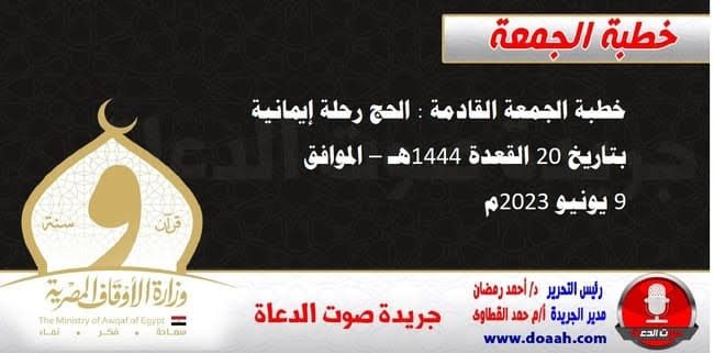 خطبة الجمعة الموافق 9يونيو 2023الحج رحلة إيمانية