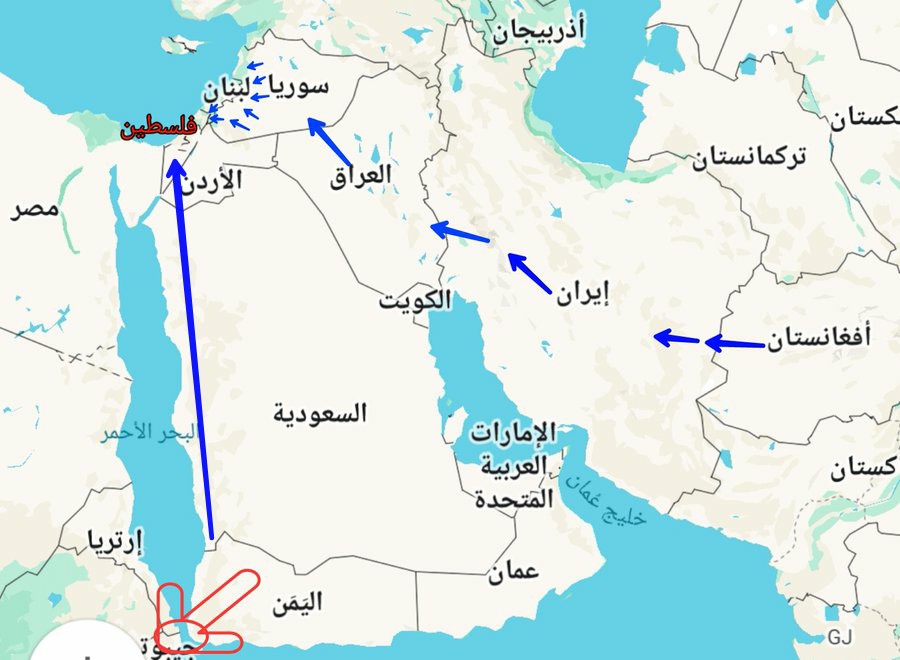 لبنان واليمن والعراق وسوريا وإيران وأفغانستان مقابل الكيان وأمريكا وبريطانيا وألمانيا… الخ