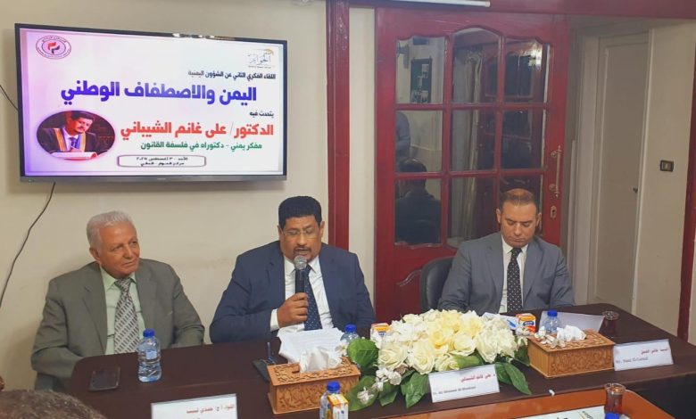 عقد برنامج الشؤون اليمنية بمركز الحوار للدراسات السياسية والإعلامية لقاء فكريًا حول الاصطفاف الوطني في اليمن، بحضور نخبة من المفكرين والباحثين المختصين بالشأن اليمني، حيث أكد اللواء أ.ح حمدي لبيب رئيس مؤسسة الحوار للدراسات والبحوث الإنسانية خلال كلمته الافتتاحية على أهمية الاصطفاف الوطني في اليمن كأساس للحل الأزمة اليمنية موضحًا أن يجب تعزيز قيم الهوية والوطنية والانتماء.