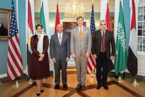 وأفاد بيان صحفي صادر عن الوزارة أن نائب وزير الخارجية كريستوفر لاندو ومستشار شؤون أفريقيا مسعد بولس عقدا اجتماعًا مع سفراء دول المجموعة الرباعية، بمشاركة سفراء كل من الإمارات والسعودية ومصر، لبحث تطورات النزاع.