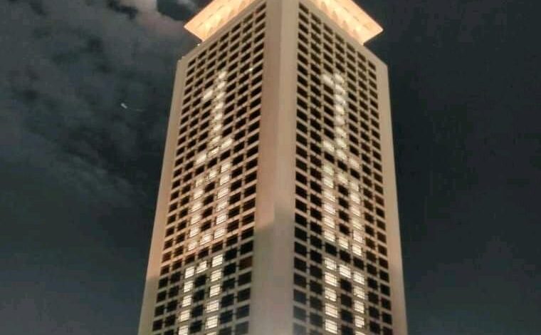 إضاءة وزارة الخارجية مساء اليوم الثلاثاء 15 مارس مبناها بالرقم “100” بمناسبة الاحتفال بذكرى مئوية الوزارة ويوم الدبلوماسي.