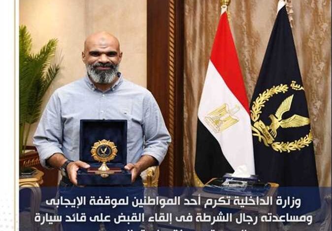 “الداخلية” تكرم مواطنا ساعد في القبض على قائد سيارة طريق السويس