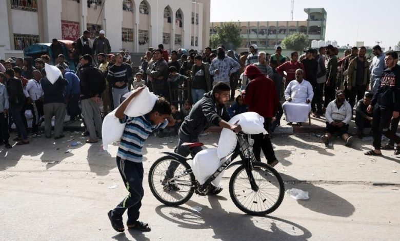 ووبحسب المركز الفلسطيني للإعلام ، أوضح الناطق الى أن 6 شاحنات وصلت إلى شمال غزة وتم تأمينها في مراكز الأونروا ـ وبدأ توزيع أكياس الطحين وهي لا تكفي المواطنين في غزة والشمال، ويقوم بعملية توزيع المساعدات أفراد من بعض العائلات.