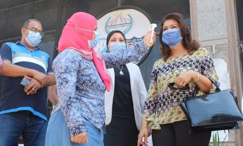 وتوفير كافة المستلزمات الطبية اللازمة للحفاظ على سلامة الطلاب والتأكيد علي قياس درجات الحراره للطلبه عند الدخول وداخل اللجان أثناء الإمتحان وأيضا لأعضاء هيئة التدريس والساده الملاحظين للجان الإمتحانيه حرصا منها علي سلامه الجميع وعدم إنتشار الوباء