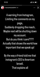 وكتب كوكا تغريدة على صحفته يقول فيه :تلقيت تحـ.ذير من إنستغرام ، مع تحديد التعلقات .. سقوط تفاعل الحساب .. ممكن يغلقوه.. تعتقدون أني أهتم ؟؟؟أريت العالم أهمية التحدث !!.