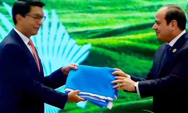 وأجرى مراسم التسليم، رئيس جمهورية مدغشقر المنتهية ولايته، اليوم الثلاثاء، لتصبح مصر رئيسا للقمة.