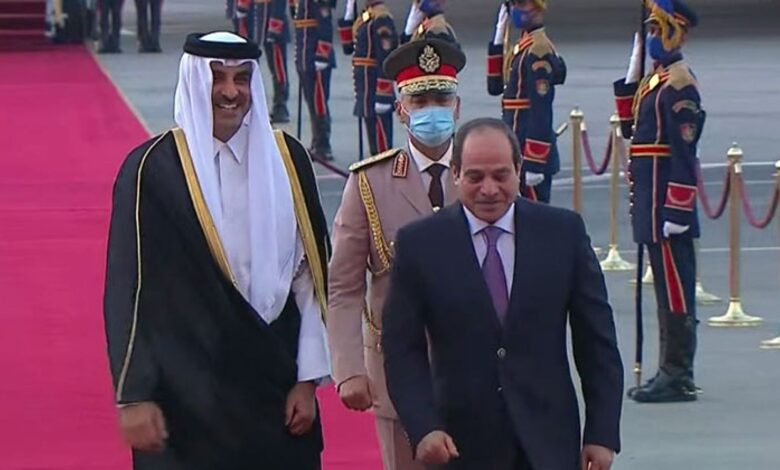الرئيس السيسي يستقبل الأمير تميم بمطار القاهرة