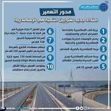 يفتتح الرئيس عبدالفتاح السيسي صباح اليوم الإثنين ٥ ديسمبر ٢٠٢٢ محور التعمير بالاسكندرية “محور ابو ذكرى” الذي يمتد بطول ٣٥ كم من تقاطعه مع طريق القاهرة / الإسكندرية الصحراوي حتى طريق سيدي كرير / مطار برج العرب بواقع ٩ حارات مرورية لكل اتجاه.