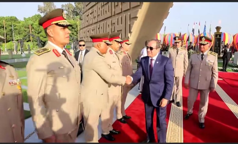 الرئيس عبد الفتاح السيسى يضع إكليل من الزهور على النصب التذكارى لشهداء القوات المسلحة بحضور قادة الجيش