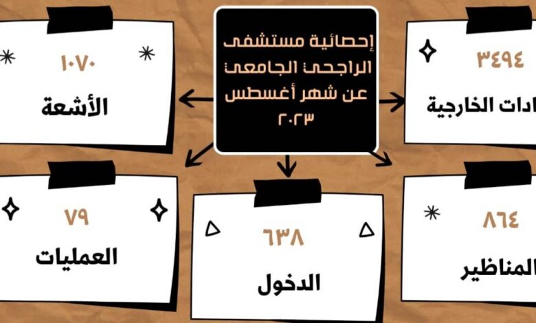 أعلنت مستشفى الراجحي للكبد بجامعة أسيوط عن استقبال ٣٤٩٤ متردداً على العيادات الخارجية خلال شهر أغسطس ٢٠٢٣ تحت رعاية الدكتور أحمد المنشاوي رئيس جامعةأسيوط والدكتور علاء عطية عميد كلية الطب بجامعة أسيوط ورئيس مجلس إدارة مستشفيات أسيوط الجامعية
