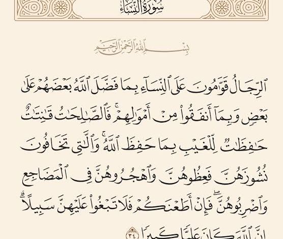 فالآية تقول: (الرجال قوَّامون على النساء بما فضّل الله به بعضهم على بعض وبما أنفقوا من أموالهم).