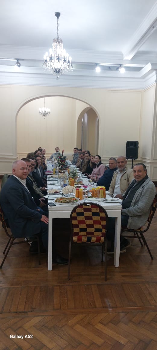 احتفل البيت الروسي بالقاهرة ( المركز الثقافي الروسي ) برئاسة الدكتور فاديم زايتشيكوف مدير المراكز الثقافية الروسية في مصر بتوديع عام 2025 واستقبال العام الجديد 2026 بأحتفالية خاصة بالعاملين بالبيت الروسي من ادارة ومدرسين ورؤساء الاستوديوهات والمترجمين والعاملين وافراد الامن ، حيث قدم زايتشيكوف الشكر لأسرة البيت الروسي علي الجهد الكبير الذي بذل خلال عام 2025 والذي حقق نتائج طيبة علي مستوي الانشطة الثقافية داخل المركز وخارجه من خلال التعاون مع المؤسسات المصرية المختلفة بما فيها الجامعات والاكاديميات المتخصصة ، في ظل الادارة الجديدة للمراكز الثقافية الروسية في مصر التي بدأت خلال عام 2025 .