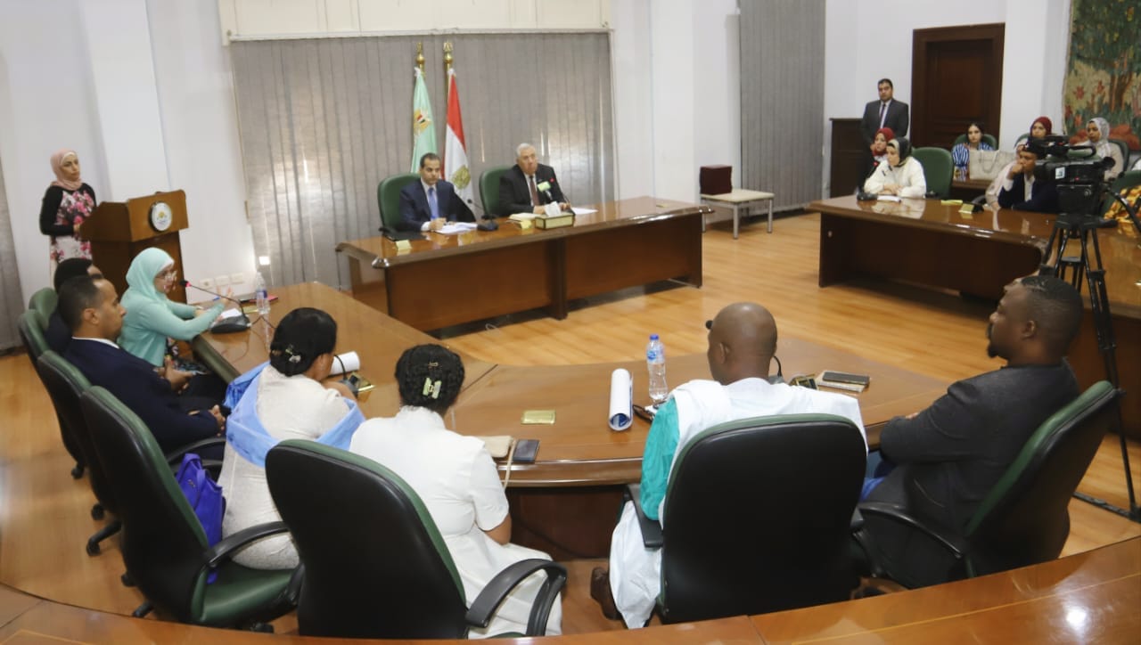 سلم السيد القصير وزير الزراعة واستصلاح الأراضي، المبعوثين من قارتي إفريقيا وأسيا، والبالغ عددهم ٢٣ متدرب يمثلون ١٢ دولة، والذين اتموا البرامج التدريبية بالمركز المصري الدولي للزراعة التابع للعلاقات الزراعية الخارجية في مجالي انتاج وصحة الدواجن، وتنمية المزارع السمكية.