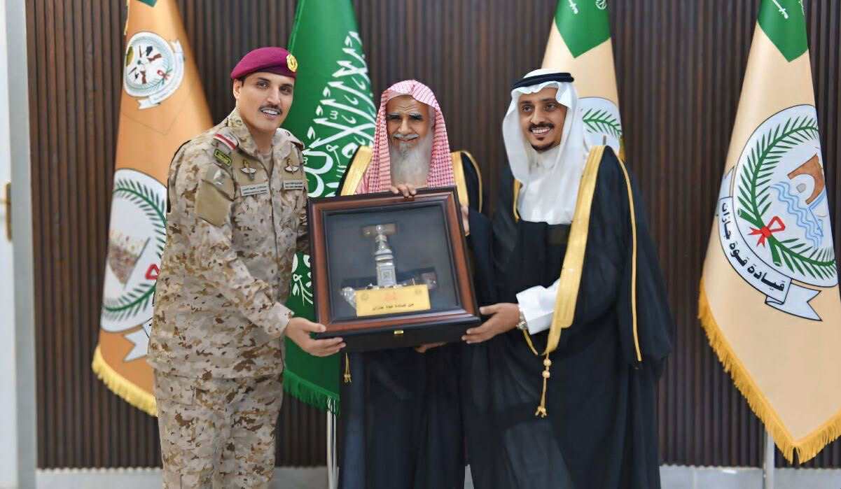 وخلال الفعالية، قدم فضيلة المستشار الشرعي درعاً تكريمياً من سماحة المفتي العام – حفظه الله – لسعادة قائد قوة جازان، تقديراً لجهوده ودعمه المستمر.