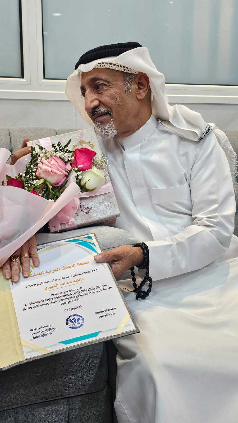 بأجواء مفعمة بالحب والفرح، تم تكريم السيدة فاطمة عبدالله الحميدي، إحدى الأمهات المثاليات، في منزلها بحضور نخبة من سيدات الفريق، منهن الأستاذة سلمى الشيخ، سارة الناجم، حوراء البقشي، كاظمية العبيد، وزينب الحسن، إلى جانب بنات المحتفى بها. وقد تولى الفنان التشكيلي الأستاذ توفيق الحميدي، شقيق المحتفى بها، مهمة تقديم التكريم، في لحظة مؤثرة جمعت بين الفن والمشاعر.