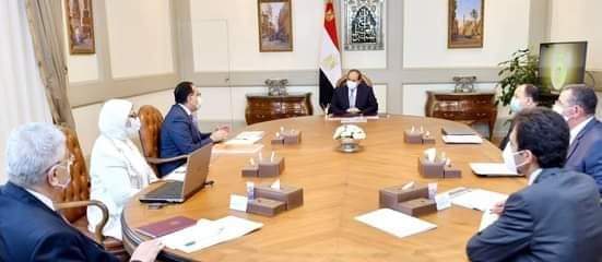 اجتمع السيد الرئيس عبد الفتاح السيسي اليوم مع الدكتور مصطفى مدبولي رئيس مجلس الوزراء والدكتور محمد معيط وزير المالية والدكتورة هالة زايد وزيرة الصحة والسكان واللواء محمد أمين مستشار رئيس الجمهورية للشئون المالية والدكتور محمد عوض تاج الدين مستشار رئيس الجمهورية لشئون الصحة والوقاية