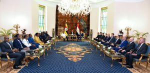 وصرح المتحدث الرسمي باسم رئاسة الجمهورية بأن الرئيسين عقدا اجتماعاً مغلقاً، وقد أعقبه جلسة مباحثات موسعة شارك فيها وفدا البلدين، حيث بحث الجانبان سبل الارتقاء بالعلاقات الثنائية التاريخية بين مصر وأوغندا، واتفقا على مواصلة تعزيزها خاصة فيما يتعلق بالجوانب السياسية، والتجارية، والاستثمارية، وبما يحقق المصلحة المشتركة للشعبين الشقيقين.