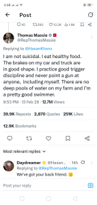 توماس ماسي (السيناتور اللي تسبب بنشر ملفات ابستين) نشر تغريدة مهمة على منصة x اعتبرها المحللون خطيرة جاء فيها: