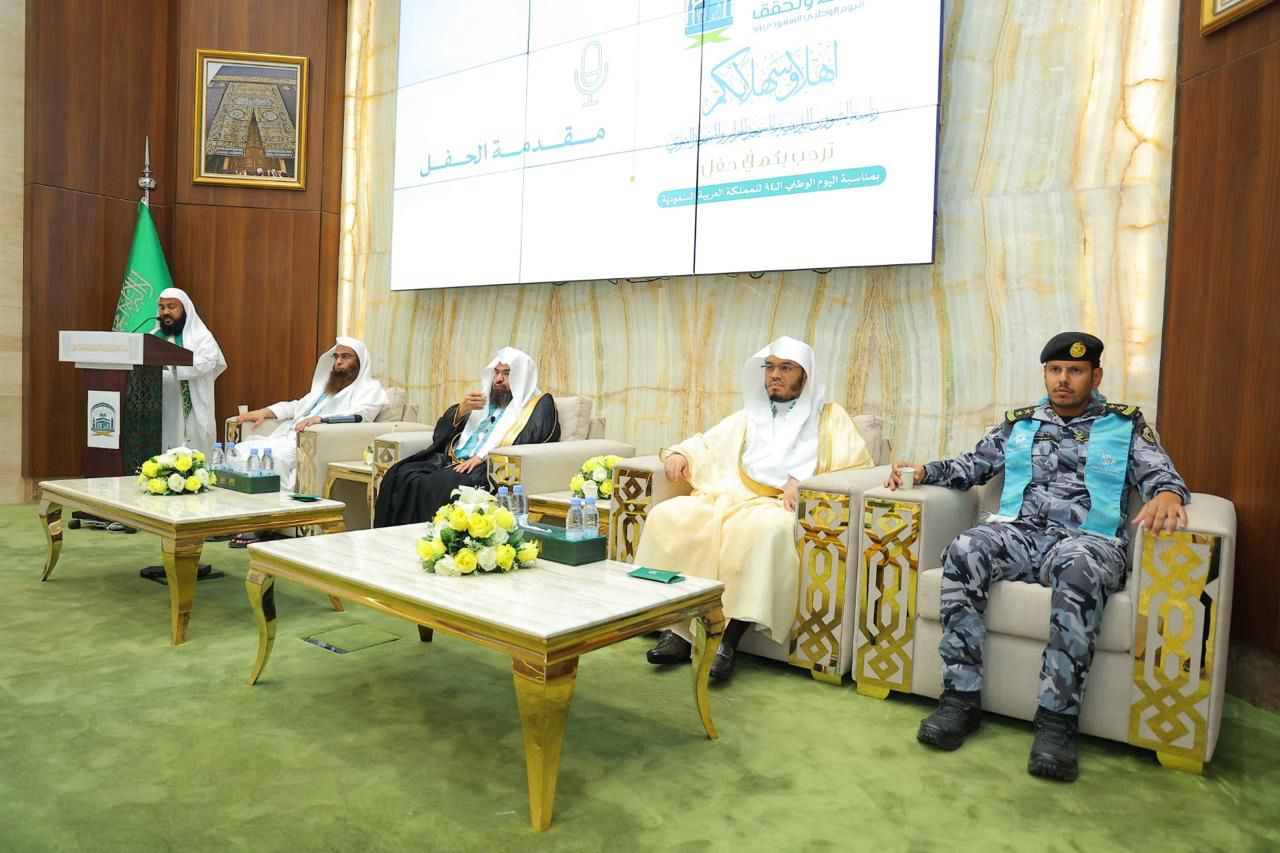وأقترح معاليه تأليف موسوعة عن جهود الملك عبدالعزيز في اعزاز الشؤون الدينية في الحرمين؛ بعدة لغات موثقة ومحكّمة .. واطلق معالي الشيخ السديس مبادرة بعنوان : “اليوم الوطني.. قيم دينية ووطنية، وآفاق ريادية وحضارية”.