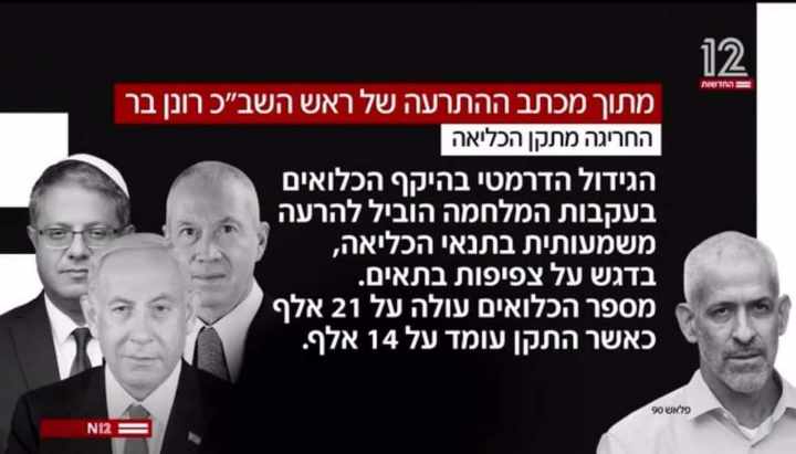 كما حذر رئيس الشاباك من الاعتقالات الكبيرة والعشوائية كشفت القناة 12 الإسرائيلية عن رسالة من رئيس الشاباك، رونين بار، تفيد بأن إسرائيل تحتجز 21000 أسير فلسطيني، وهو رقم أعلى بكثير من العدد الرسمي الإسرائيلي المعلن والذي كان بحلول 31 مارس/آذار 8600.