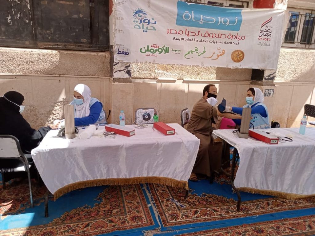 من جانبه أوضح المحاسب السيد رجب مدير جمعية الأورمان بالشرقية على استمرار تنفيذ أعمال القوافل الطبية ” نور حياة “والتي ينفذها صندوق تحيا مصر بالتعاون والتنسيق مع القوات المسلحة وجمعية الأورمان بالمحافظة ، موضحاً بأن القافلة استهدفت الكشف علي الفئات الأكثر احتياجا بنطاق المحافظة وتسليم العلاج وعمل النظارات الطبية بالمجان للحالات المكتشف إصابتها بمسببات ضعف وفقدان الإبصار ، وقياس الضغط والسكر مجانا فضلاً عن تحويل الحالات المتطلبة تدخلاً جراحياً إلى المستشفى العسكري بالسويس مضيفاً بأنه تم تحديد الحالات المستهدفة ضمن المبادرة من خلال أبحاث اجتماعية بالتنسيق مع مديرية التضامن الاجتماعي.