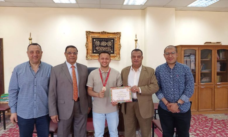 يتقدم الاستاذ الدكتور مجدى الشحات عميد الكلية والسادة الوكلاء ورؤساء الاقسام و اعضاء هيئة التدريس وجميع العاملين بالكلية بخالص التهانى إلى الطالب محمد لطفي بالفرقه الثالثه شعبه اللغة الانجليزية لحصولة على المركز الاول في بطوله الجمهوريه للكاراتيه ميزان ٧٠ كيلو وتأهله لبطوله العالم في رومانيا.