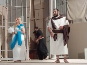 والعرض يروي بعض الأحداث فى القرن الرابع قبل الميلاد فى مدينة ايفيس الاغريقية بائع يدعى هيروسترات قام بحرق معبد ( ارتمس / ارتمدا / ديانا ) وهو رب الصيد والغابات عند الاغريق والذي تم بناؤه فى ١٢٠ سنة وعلى حسب الاسطورة الاغريقية ان الألهه ساعدت البشر فى بنائه ويعد هذا المعبد من عجائب الدنيا السبع لولا فعلة هيروسترات التى فعلها من أجل الشهرة والمجد اعتقادا منه بأنه يتحدى ان يتذكر احد اسم اى فرد او شخص بنى المعبد فى حين انه من السهل تذكر من حرقه وتتوالى الأحداث بإصدار أوامر صارمة بالنسيان وكان الأمر بالحرف الواحد انسوا هيروسترات.