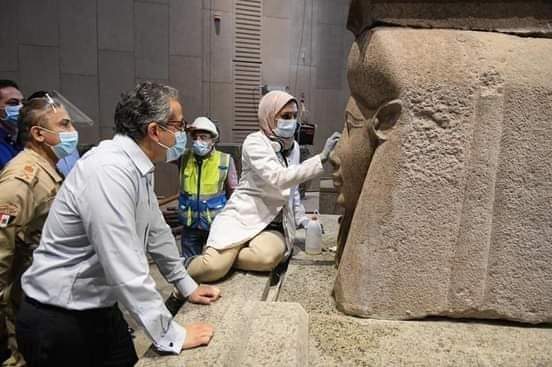 شملت الجولة تفقد الواجهات الخارجية والداخلية لمبنى المتحف والبهو والسلالم الجانبية والدرج العظيم وقاعات العرض الخاصة بكنوز الملك توت عنخ آمون حيث تم الانتهاء بنسبة ١٠٠٪ من تثبيت القطع الأثرية بالبهو والدرج العظيم، وجاري الآن أعمال الترميم الدقيق لها. كما تم الانتهاء من تثبيت جميع فتارين عرض كنوز الملك الشاب والبالغ عددها ١٠٧ فاترينة قادمة من ألمانيا وايطاليا في أماكن عرضها النهائي داخل القاعات الخاصة به وعرض أكثر من ٦٥٪ من كنوز الملك الشاب داخل ٦٥ فاترينة منها