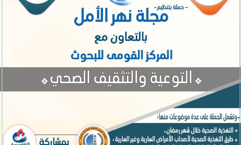 ضمن فعاليات اليوم الثاني من حملة “وعيك هيفرق” التي تنظمها مجلة نهر الامل بالتعاون مع المركز القومي للبحوث وبمشاركة الاتحاد العربي للتنمية المستدامة والبيئة والمؤسسة العربية الافريقية للابحاث والتنمية المستدامة كتبت :د.يسر كاظم – أستاذ التغذية الطبية بالمركز القومي للبحوث.
