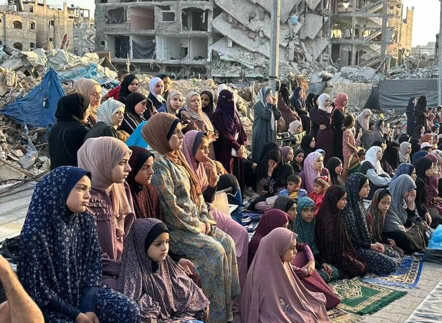 الفلسطينيون يؤدون صلاة العيد وسط ركام المساجد والمنازل