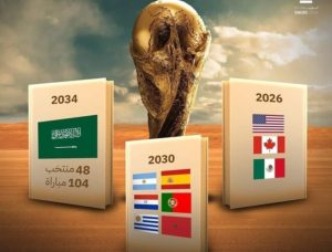 قد أعلنت سابقا الفيفا بأن كأس العالم 2026سيلعب في أمريكا وكندا والمكسيك، وكأس العالم 2030سينظم في اسبانيا والبرتغال والمغرب علي أن تلعب كل من الأرجنتين وارجواي وبارجواي أول مباراة لهم في بلدنهم، وستنظم السعودية كأس العالم 2034.