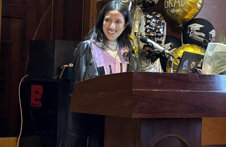 بمناسبة حصول نجلتها الدكتورة خديجة أشرف مراد المعيدة بالجامعة المصرية الروسية على درجة الماجستير من كلية طب الأسنان بجامعة عين شمس