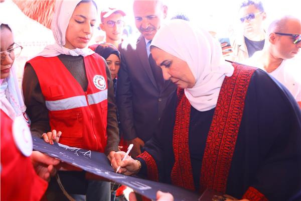 وحرصت الوزيرة على لقاء متطوعي الهلال الأحمر المصري في المحافظة، مشيدة بما يقدموه في جميع المواقع.