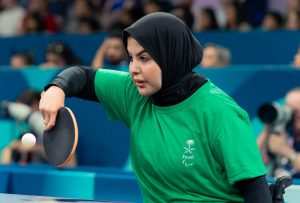 أنهت غالية العنزي لاعبة المنتخب السعودي لكرة الطاولة، مشاركتها الأولى في دورات الألعاب البارالمبية، بعد خسارتها اليوم الأحد، من البريطانية ميغان شاكلتون بنتيجة 3/0 ضمن منافسات دور الـ16، المقامة بصالة أرينا بساحة جنوب باريس.
