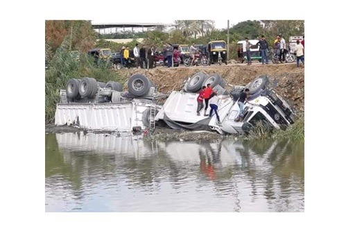 القليوبية : توك توك يتسبب في سقوط سيارة نقل ثقيل فى ترعة