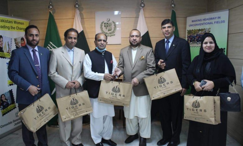 أستقبل سعادة القنصل العام لجمهورية باكستان الإسلامية السيد خالد مجيد في مكتبه بجدة يوم أمس الإثنين الثامن من شهر ربيع الثاني الحالي – رئيس لجنة الشرق الأوسط لغرفة التجارة والصناعة بفيصل آباد بجمهورية باكستان الإسلامية – السيد حافظ محمد شفيق كاشف – وتم خلال اللقاء بحث الفرص التجارية في مختلف قطاعات النسيج بالمملكة العربية السعودية، كما تقرر وضع خارطة طريق للاستفادة